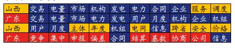今天先通過對《山西省電力中長期交易規(guī)則(暫行)》修改稿與《廣東電力市場交易基本規(guī)則(試行)》分解后詞頻的對比先來講講這兩個市場的差異規(guī)則導(dǎo)向。