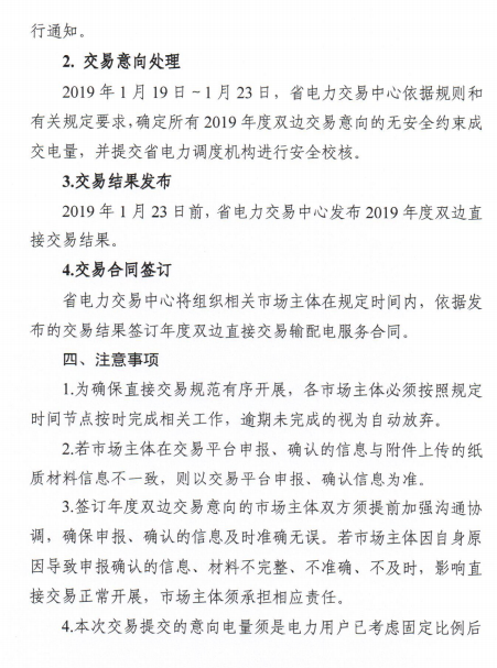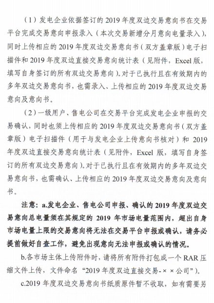 2019年1月18日9:00至18:00提交年度雙邊交易意向。