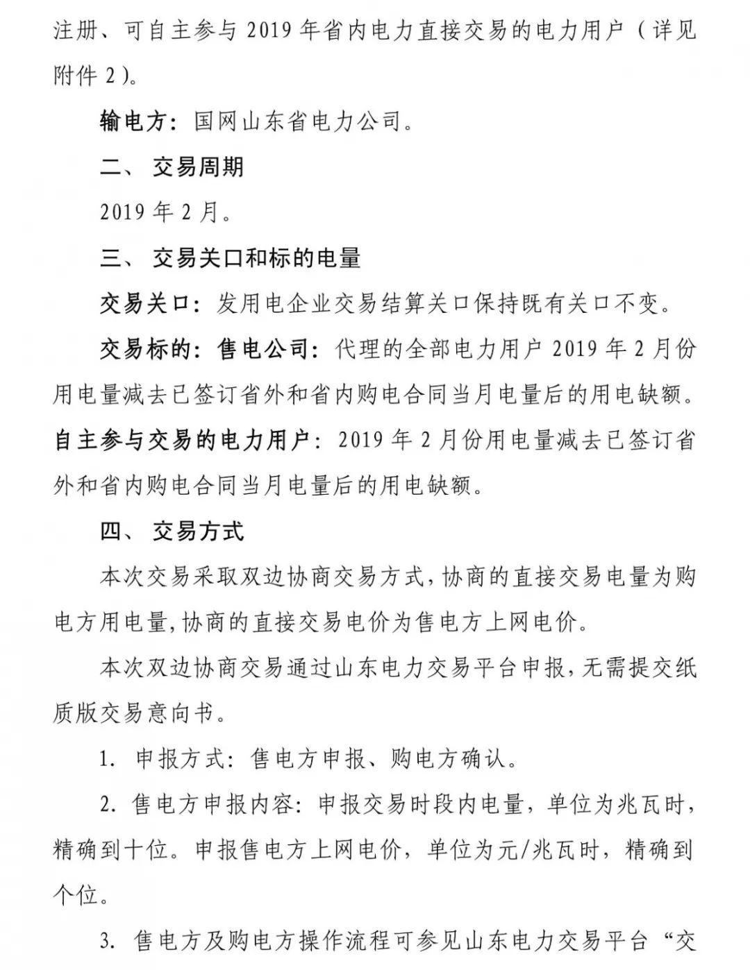 山東省2019年2月份電力直接交易(雙邊協(xié)商)公告