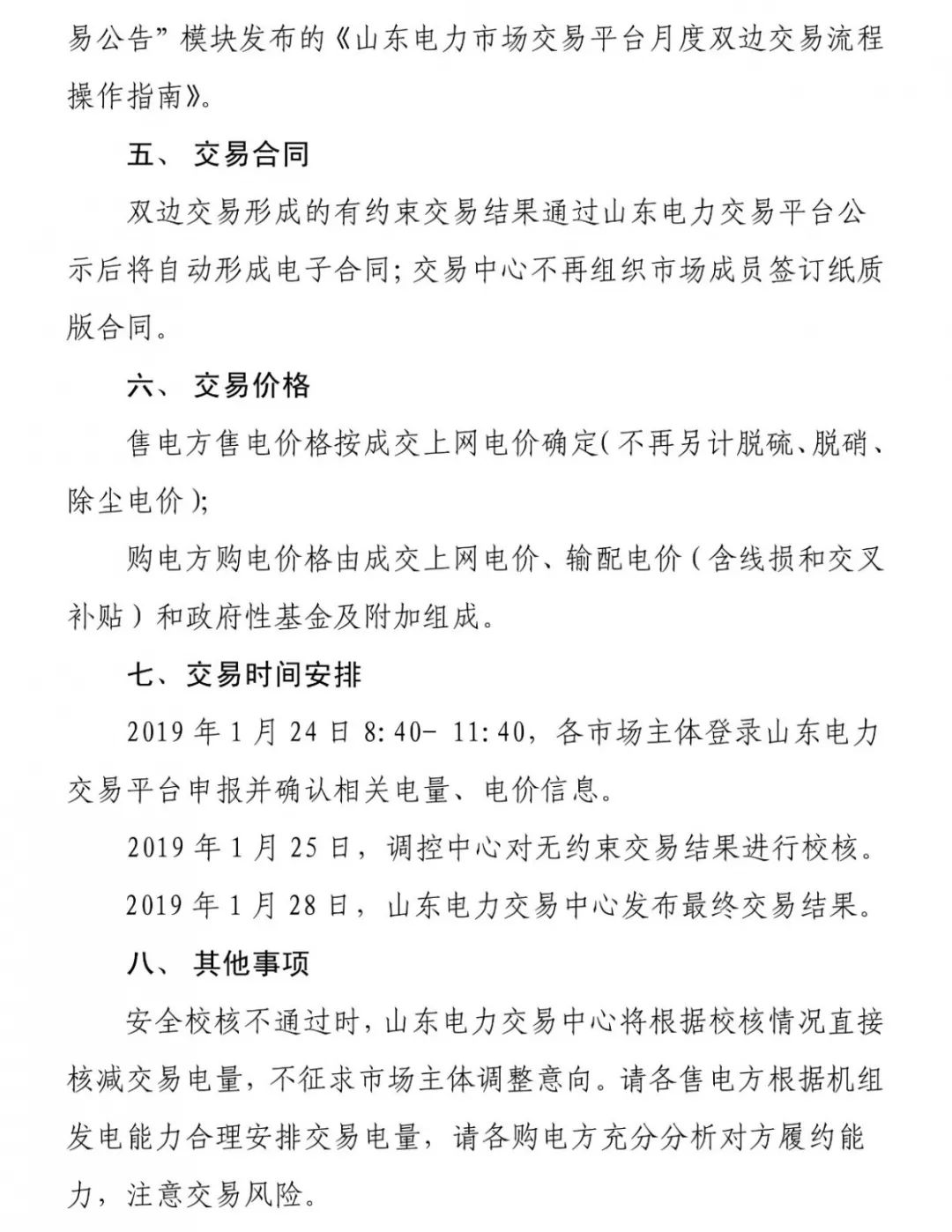 2019年1月28日,山東電力交易中心發(fā)布最終交易結(jié)果。