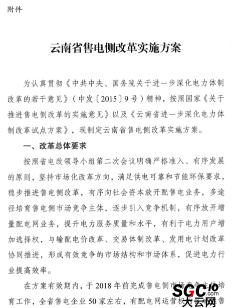 云南省售電側(cè)改革方案已經(jīng)實(shí)施, 該方案有效期三年,對售電側(cè)市場主體分類、售電公司準(zhǔn)入、退出和權(quán)利義務(wù),有序放開增量配電網(wǎng)、售電公司的管理等都做出了明確要求。詳情如下: