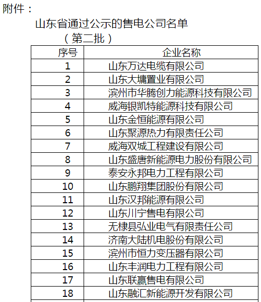 山東電力交易中心關(guān)于第二批售電公司公示結(jié)果的公告