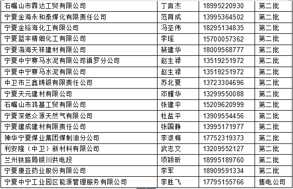 寧夏三季度發(fā)電企業(yè)與電力用戶電力直接交易名單