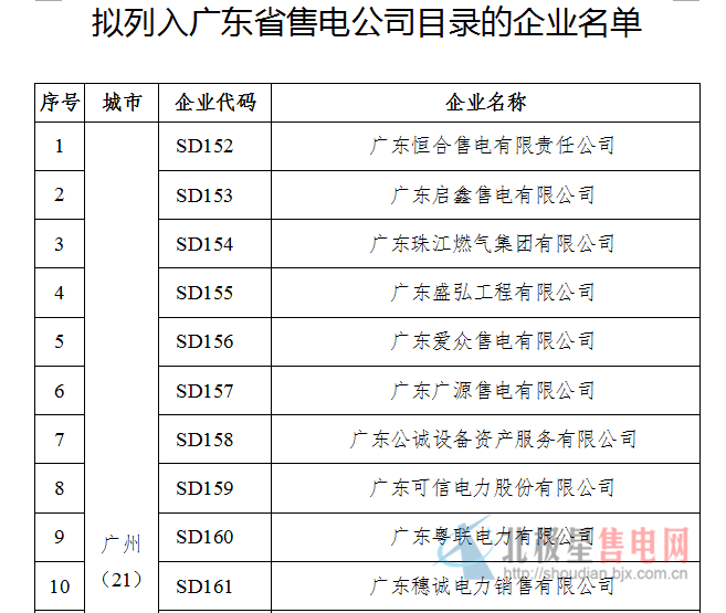廣東:公布第五批列入售電公司目錄企業(yè) 兩家公司需補充材料