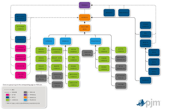與ERCOT相似,PJM(Pennsylvania—New Jersey—Maryland)目前負責美國大西洋沿岸13個州及1個特區(qū)的電力系統運行與管理,以及PJM電力市場的運營與結算。PJM的宗旨為確保大規(guī)模電力系統的安全可靠性,創(chuàng)建并運行強健的、有競爭力的且無歧視性的電力市場,理解客戶需求,并在具有成本效益的前提下傳遞有價值的服務以滿足客戶需求,以及通過知識的有效集成和先進的技術實現高效生產率。PJM由不同形式職責的用戶群、小組委員會、委員會、高級委員會、固定委員會、及PJM理事會構成。