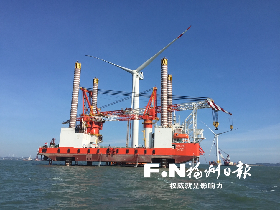 值得一提的是,在首臺機(jī)組吊裝過程中,我省自主研發(fā)的首臺海上風(fēng)電一體化移動作業(yè)平臺“福船三峽”號完成首秀,其起吊能力、甲板工作面積及載荷均為國內(nèi)最強(qiáng)或最大。得益于此,海上風(fēng)機(jī)吊裝時(shí)間大大縮短,創(chuàng)造了單臺機(jī)組吊裝2.5天完成的紀(jì)錄。