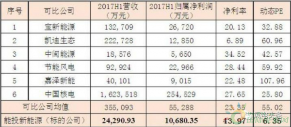 對(duì)其他新能源發(fā)電行業(yè)的上市公司相比,截至2017年9月20日的動(dòng)態(tài)PE與2017年上半年的財(cái)務(wù)數(shù)據(jù),云南能投此次并購的標(biāo)的資產(chǎn),均表現(xiàn)亮麗。6家可比公司的平均凈利率為23.35%,標(biāo)的公司為44%,比同行業(yè)可比上市公司盈利能力更強(qiáng),而且只有6.34-9倍的估值,遠(yuǎn)低于同行業(yè)55倍的平均PE。另外,以2017年1月江南化工(002226,股吧)39.8億元并購盾安新能源為例(預(yù)案),盾安新能源2015年凈利潤為-2,559萬元,2016年1-9月營收3.35億,歸屬凈利潤為2740萬元,2017年預(yù)測凈利潤為1.42億元,對(duì)應(yīng)的PE為28.03倍。