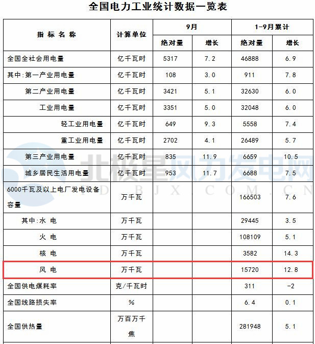 國家能源局昨日(10月23日)公布1-9月份全國電力工業(yè)統(tǒng)計數(shù)據(jù)。數(shù)據(jù)顯示,1-9月全國6000千瓦及以上風(fēng)電發(fā)電設(shè)備容量累計157.2GW(15720萬千瓦),同比增長12.8%。以下為具體數(shù)據(jù):