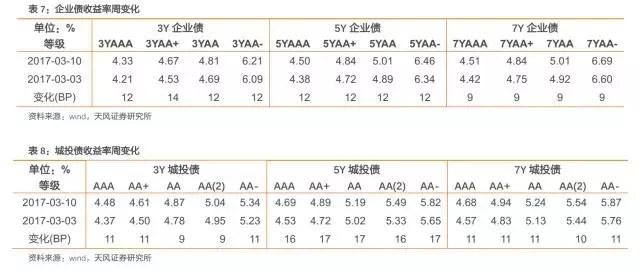 各類信用債收益率整體上行。具體來看,中短期票據(jù)收益率曲線1年期各等級收益率上行5-15BP,3年期各等級收益率上行12-14BP,5年期各等級收益率上行12-12BP;企業(yè)債收益率曲線3年期各等級收益率上行12-14BP,5年期各等級收益率上行12-12BP,7年期各等級收益率上行9-9BP;城投債收益率曲線3年期各等級收益率上行9-11BP,5年期各等級收益率上行16-17BP,7年期各等級收益率上行10-11BP。