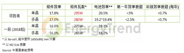 中國國家能源局發(fā)布了第三批光伏領(lǐng)跑者效率門檻,訂定單、多晶組件的轉(zhuǎn)換效率分別落在17.8%與17%。以現(xiàn)行產(chǎn)品來看,這意味著單、多晶PERC將較有競爭力,而相對于性價比之間的競爭,PERC產(chǎn)線是否成熟到足以供應(yīng)領(lǐng)跑者專案所需,將成為單多晶業(yè)者搶攻第三批領(lǐng)跑者占有率的關(guān)鍵。