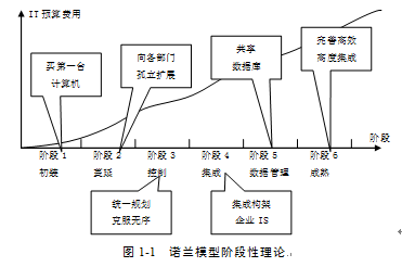 諾蘭(Nolan)模型理論是信息系統(tǒng)發(fā)展的階段性理論,如圖1-1所示,它用于指導(dǎo)管理信息系統(tǒng)的建設(shè),對于校園信息化建設(shè)也同樣具有指導(dǎo)意義。