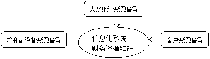 供電企業(yè)財(cái)務(wù)管理是企業(yè)管理的重要環(huán)節(jié),是人的活動、企業(yè)擴(kuò)大再生產(chǎn)和電能輸送、轉(zhuǎn)換、使用的綜合反映和表現(xiàn)。而供電企業(yè)信息化系統(tǒng)之一:財(cái)務(wù)核算管理系統(tǒng)的建設(shè)就必須要考慮編碼問題。目前,企業(yè)內(nèi)運(yùn)行的財(cái)務(wù)管理信息系統(tǒng)是一集團(tuán)式、封閉式企業(yè)財(cái)務(wù)管理系統(tǒng),設(shè)計(jì)時沒有考慮與企業(yè)人力資源管理、輸變電設(shè)備生產(chǎn)維護(hù)系統(tǒng)、客戶管理信息系統(tǒng)(營銷系統(tǒng))信息交換問題。現(xiàn)有運(yùn)行的這套財(cái)務(wù)系統(tǒng)包括賬務(wù)處理、報(bào)表處理、固定資產(chǎn)管理、工資核算管理四大模塊,已不能適應(yīng)現(xiàn)代企業(yè)管理制度要求,如預(yù)算管理、成本控制管理、資金流動管理等,而信息化系統(tǒng)中財(cái)務(wù)資源管理與其它管理模塊是一體化設(shè)計(jì)的,各模塊之間關(guān)聯(lián)性強(qiáng)、數(shù)據(jù)交換能力與編碼設(shè)計(jì)密切相關(guān),財(cái)務(wù)資源編碼與其它主要系統(tǒng)編碼關(guān)系如圖5,