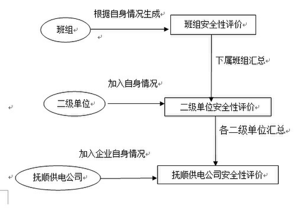 工作人員到現(xiàn)場對生產(chǎn)設備等進行巡視發(fā)現(xiàn)1#變壓器漏油——在安全性評價系統(tǒng)中填寫本班組的問題及整改措施表——打電話通知上級單位(即二級單位)——二級單位在安全性評價系統(tǒng)中直接調(diào)用此班組的問題及整改措施表——查看此項問題——利用系統(tǒng)功能匯總生成本單位系統(tǒng)問題及整改措施表——總局在系統(tǒng)中直接查看此項問題——匯總所有單位問題,系統(tǒng)自動生成總局問題及整改措施表。