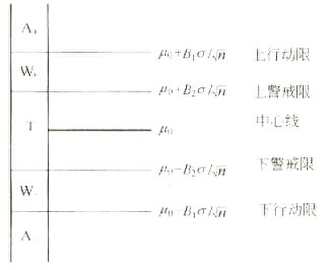 帶警戒限的均值控制圖,簡稱帶戒圖,它的原理與使用條件和常規(guī)控制圖相同,但它對常規(guī)控制圖做了改進(jìn),帶有警戒限和行動(dòng)限,更加適用于點(diǎn)檢結(jié)果數(shù)據(jù)的分析。帶戒圖有兩種形式:雙側(cè)準(zhǔn)則和單側(cè)準(zhǔn)則。當(dāng)以雙側(cè)準(zhǔn)則方式