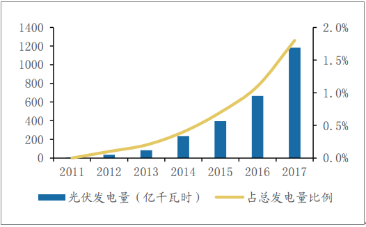2011年-2017年光伏累計(jì)裝機(jī)和占比