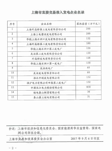 上海15家企業(yè)納入直接交易準(zhǔn)入發(fā)電企業(yè)名單