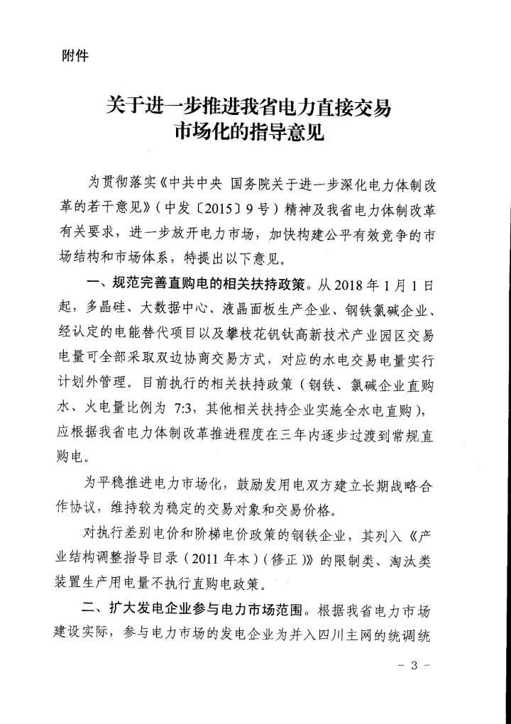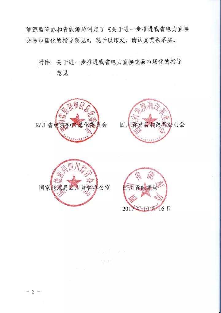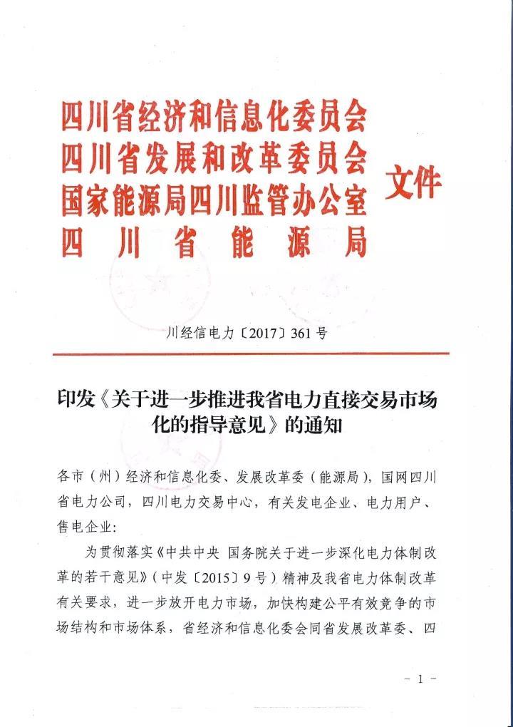 四川省經(jīng)信委、四川省發(fā)改委、國(guó)家能源局四川監(jiān)管辦、四川省能源局日前聯(lián)合下發(fā)了《關(guān)于進(jìn)一步推進(jìn)我省電力直接交易市場(chǎng)化的指導(dǎo)意見》。