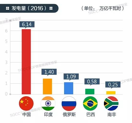 金磚五國(guó)的年發(fā)電量占全球的近四成!