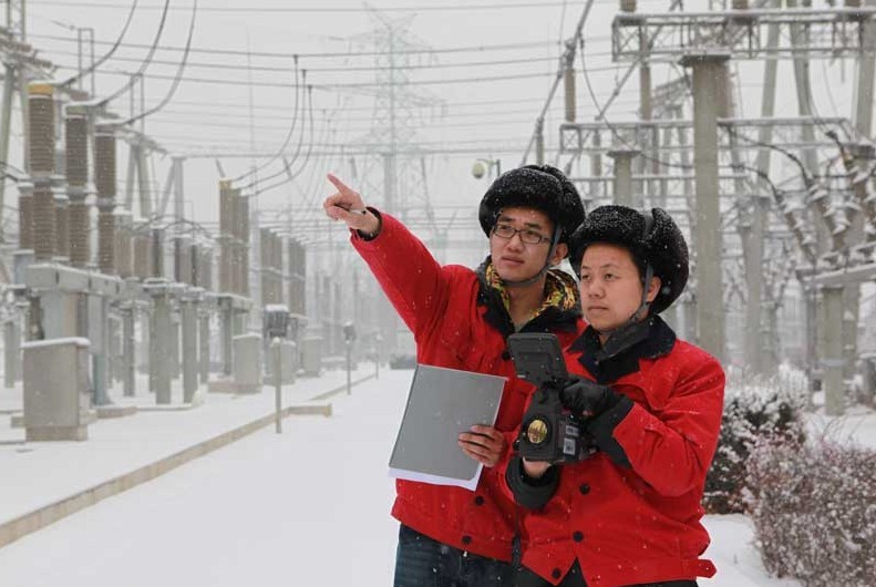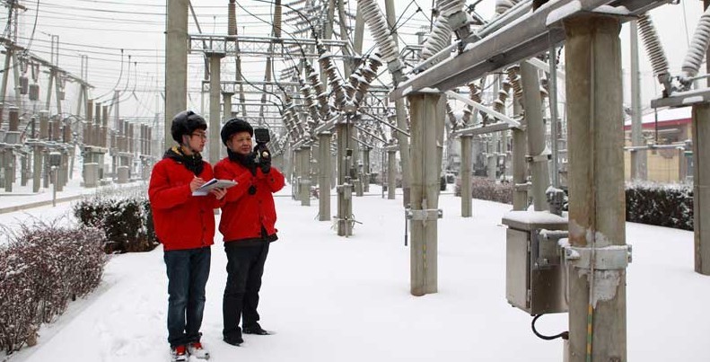承德大部地區(qū)出現(xiàn)降雪天氣。冀北承德供電公司加強(qiáng)了對(duì)重要線路、變電站和事故多發(fā)地區(qū)的特巡工作,加大電網(wǎng)的安全檢查與巡視力度,排查隱患,確保電網(wǎng)安全運(yùn)行。圖為該公司員工冒雪對(duì)變電站設(shè)備進(jìn)行測(cè)溫檢查。