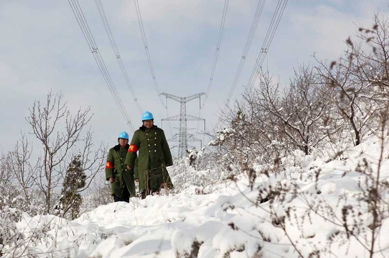 圖3:承德大部地區(qū)出現(xiàn)降雪天氣。冀北承德供電公司加強(qiáng)了對(duì)重要線路、變電站和事故多發(fā)地區(qū)的特巡工作,加大電網(wǎng)的安全檢查與巡視力度,排查隱患,確保電網(wǎng)安全運(yùn)行。圖為供電人員冒雪對(duì)重點(diǎn)線路進(jìn)行巡視。
