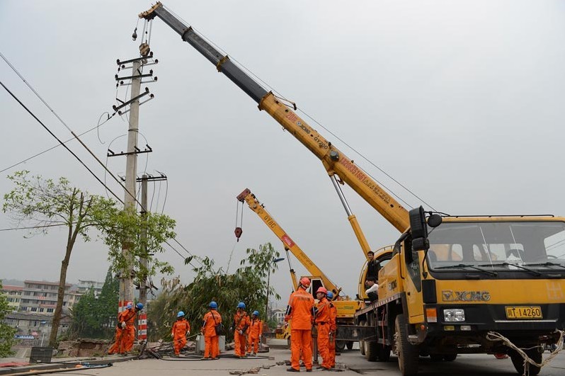 供電員工奮力搶險(xiǎn) 雅安災(zāi)區(qū)部分線路恢復(fù)送電