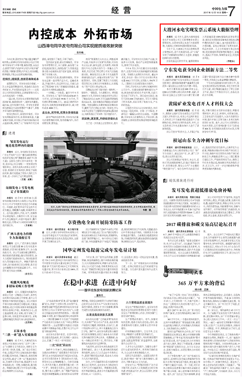 12月5日,國電大渡河流域水電開發(fā)有限公司正式投用財務(wù)發(fā)票云管理系統(tǒng),實現(xiàn)對發(fā)票業(yè)務(wù)進行大數(shù)據(jù)管理,大渡河公司財務(wù)轉(zhuǎn)型取得新的突破。