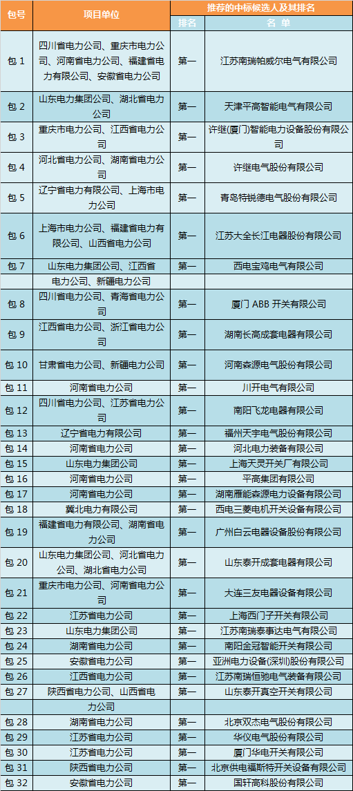 國家電網(wǎng)公司輸變電項目2017年第六次變電設(shè)備(含電纜)招標(biāo)采購—10kV開關(guān)柜(招標(biāo)編號:0711-17OTL01211132)評標(biāo)工作已經(jīng)結(jié)束。依據(jù)《中華人民共和國招標(biāo)投標(biāo)法實施條例》第五十三條和第五十四條的規(guī)定,現(xiàn)將評標(biāo)委員會推薦的中標(biāo)候選人予以公示,公示期3天。投標(biāo)人或者其他利害關(guān)系人對依法必須進行招標(biāo)的項目的評標(biāo)結(jié)果有異議的,應(yīng)當(dāng)在中標(biāo)候選人公示期間以書面形式(傳真)向招標(biāo)人提出。